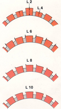 axle sectional view of bar - normal wear of copper per section and correct brush stagger